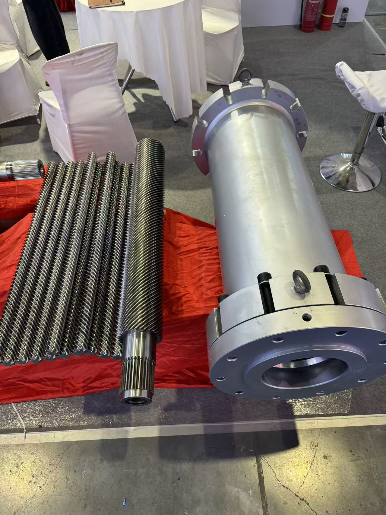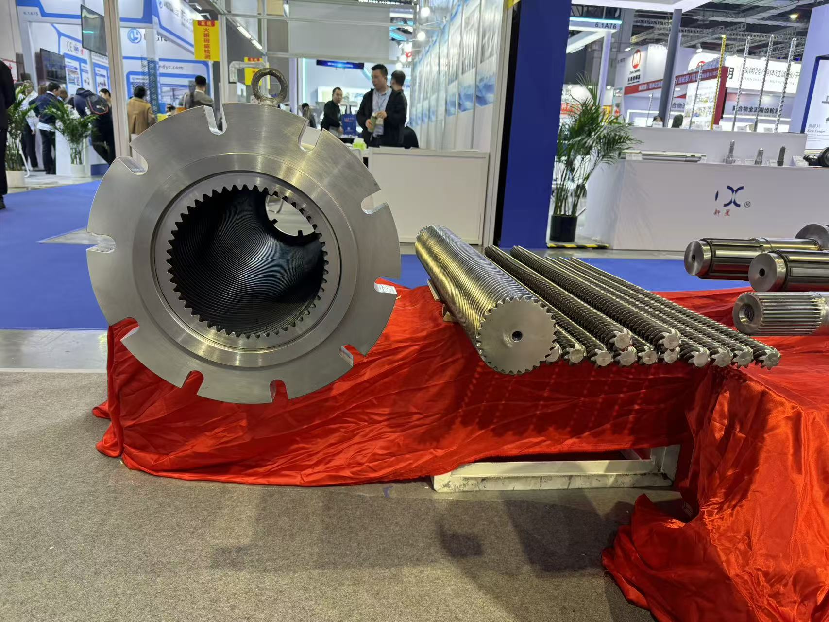 Lo más destacado de la exposición fueron los componentes de las extrusoras planetarias de la empresa. Su exclusivo diseño de estructura de engranaje interno y anillo de engranaje externo permite el corte y la mezcla de materiales poliméricos de alta intensidad, lo que resulta en un calentamiento más uniforme y una plastificación significativamente mejorada.
